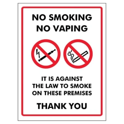 V Safety No Smoking Vaping It Is Against The Law To Smoke On These... 150 x 200 mm 2mm Super Tough Rigid Plastic Sign