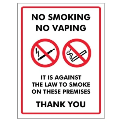V Safety No Smoking Vaping It Is Against The Law To Smoke On These... 400 x 600 mm 2mm Rigid Plastic Sign