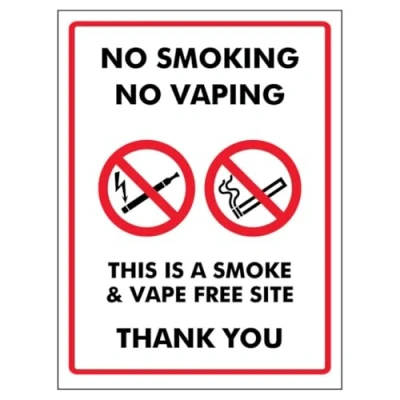 V Safety No Smoking Vaping This Is a Smoke & Vape Free Site Thank You 200 x 300 mm 2mm Super Tough Rigid Plastic Sign