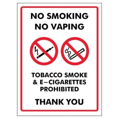 V Safety No Smoking Vaping Tobacco Smoke & E Cigarettes Prohib... 150 x 200 mm Self Adhesive Vinyl Aluminium Effect Sign
