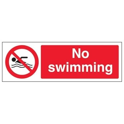 V Safety No Swimming Landscape 300 x 100 mm Glow In The Dark Self Adhesive Vinyl Sign