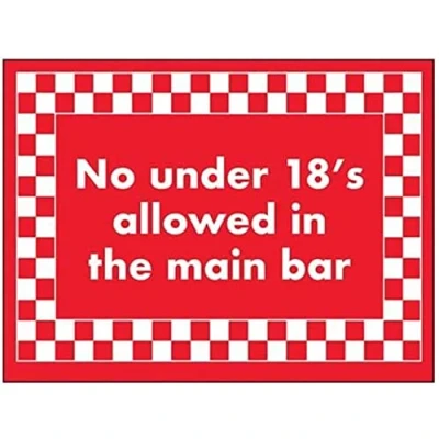 V Safety No Under 18's Allowed In Main Bar Sign 200mm x 150mm 1mm Rigid Plastic
