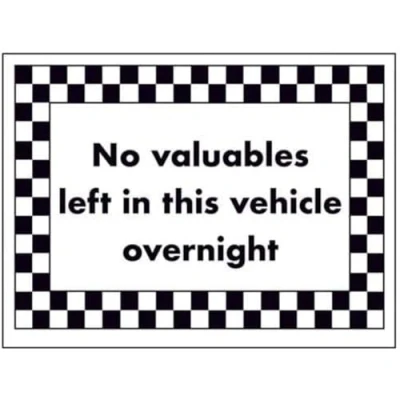 V Safety No Valuables left In This Vehicle Overnight Sign 200mm x 150mm Self Adhesive Vinyl