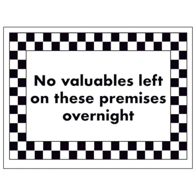 V Safety No Valuables Left on These Premises Overnight 200 x 150 mm Glow In The Dark Self Adhesive Vinyl Sign