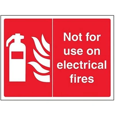 Helps fulfil obligations to convey essential information relating to fire fighting equipment as per Health and Safety (Safety Signs & Signals) Regulations 1996 Conforms to EN ISO 7010:2012 Landscape Orientation. Sign reads "Not For Use On Electrical Fires" Highly durable Self Adhesive Vinyl material and screen printed message will stand the test of time Sign measures 200 x 150mm. Self Adhesive material will adhere securely to most surfaces