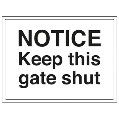 V Safety Notice Keep This Gate Shut 300 x 200 mm 2mm Super Tough Rigid Plastic Sign
