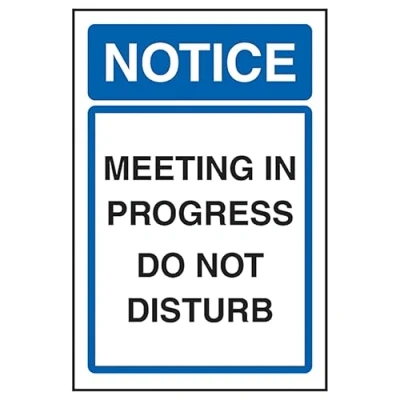 V Safety Notice Meeting In Progress Do Not Disturb 150 x 200 mm Glow The Dark Self Adhesive Vinyl Sign