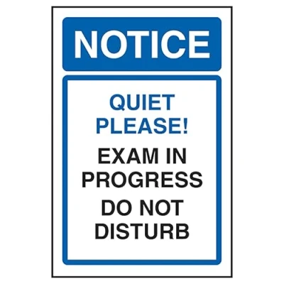 V Safety Notice Quiet Please! Exam In Progress Do Not Disturb 200 x 300 mm 2mm Super Tough Rigid Plastic Sign