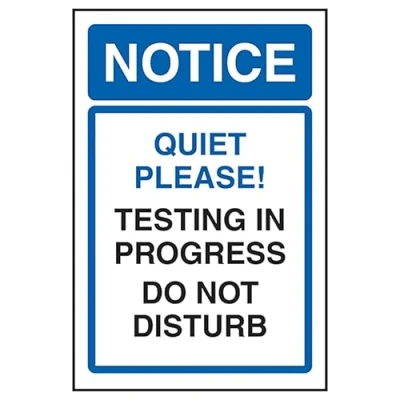 V Safety Notice Quiet Please! Testing In Progress Do Not Disturb 200 x 300 mm 2mm Super Tough Rigid Plastic Sign