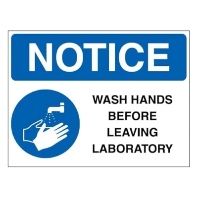 V Safety NOTICE Wash Hands Before Leaving Laboratory 400 x 300 mm Sign Glow In The Dark 1mm Rigid Plastic