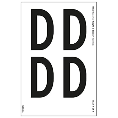 V Safety One Letter Sheet D 23 mm Character Height 300 x 200 Self Adhesive Vinyl Sign
