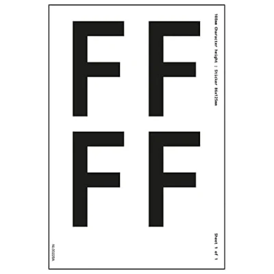 V Safety One Letter Sheet F 23mm Character Height 300x200mm Self Adhesive Vinyl