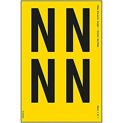V Safety One Letter Sheet N 18 mm Character Height 300 x 200 Yellow Adhesive Vinyl