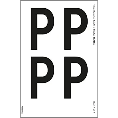 V Safety One Letter Sheet P 36 mm Character Height 300 x 200 Self Adhesive Vinyl Sign