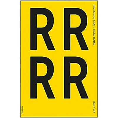 V Safety One Letter Sheet R 9mm Character Height 300x200mm Yellow Adhesive Vinyl