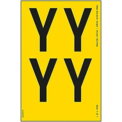 V Safety One Letter Sheet Y 18 mm Character Height 300 x 200 Yellow Adhesive Vinyl