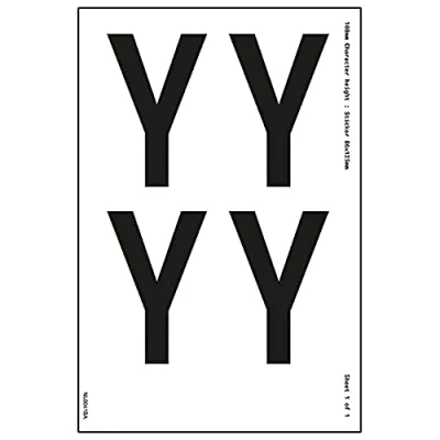 V Safety One Letter Sheet Y 9mm Character Height 300x200mm Self Adhesive Vinyl