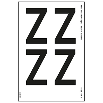 V Safety One Letter Sheet Z 54mm Character Height 300x200mm Self Adhesive Vinyl