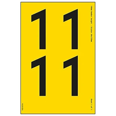 V Safety One Number Sheet 1 23mm Height 300x200mm Yellow Adhesive Vinyl