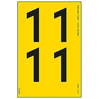 V Safety One Number Sheet 1 76mm Height 300x200mm Yellow Adhesive Vinyl