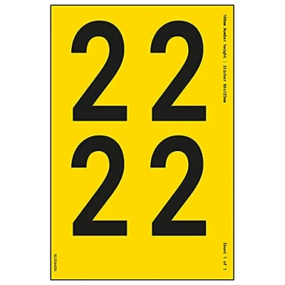 V Safety One Number Sheet 2 36 mm Height 300 x 200 Yellow Adhesive Vinyl
