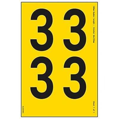 V Safety One Number Sheet 3 13mm Height 300x200mm Yellow Adhesive Vinyl