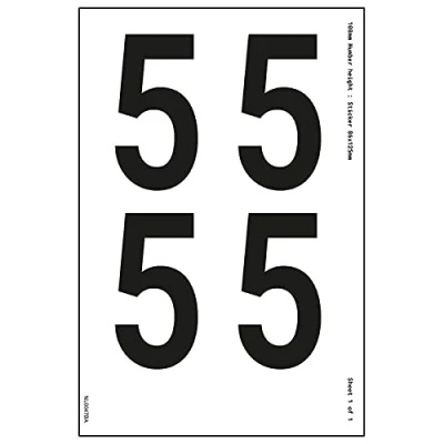 V Safety One Number Sheet 5 18mm Height 300x200mm Self Adhesive Vinyl