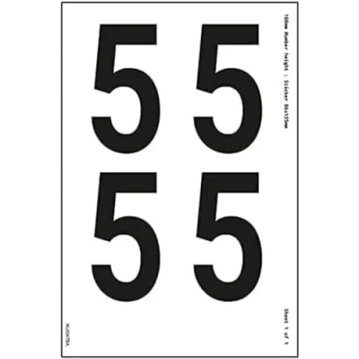 V Safety One Number Sheet 5 23mm Height 300x200mm Self Adhesive Vinyl