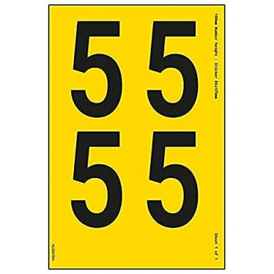V Safety One Number Sheet 5 76 mm Height 300 x 200 Yellow Adhesive Vinyl Sign