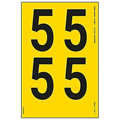 V Safety One Number Sheet 5 9mm Height 300x200mm Yellow Adhesive Vinyl