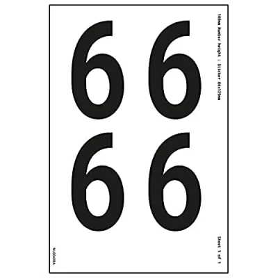V Safety One Number Sheet 6 18mm Height 300x200mm Self Adhesive Vinyl