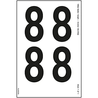 V Safety One Number Sheet 8 23 mm Height 300 x 200 Self Adhesive Vinyl