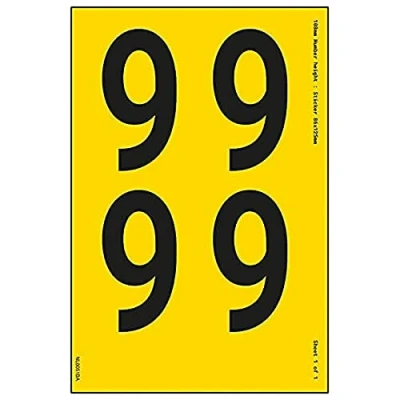 V Safety One Number Sheet 9 108mm Height 300x200mm Yellow Adhesive Vinyl
