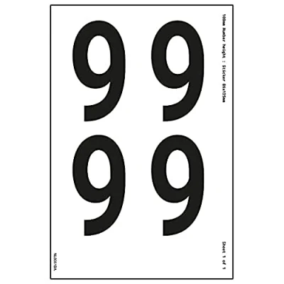 V Safety One Number Sheet 9 23mm Height 300x200mm Self Adhesive Vinyl