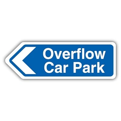 V Safety Overflow Car Park Arrow Left Blue Landscape Shaped Sign 300 x 100 mm 2mm Super Tough Rigid Plastic