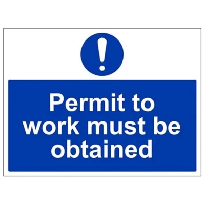 V Safety Permit to work must be obtained 600x450mm Self Adhesive Vinyl Sign