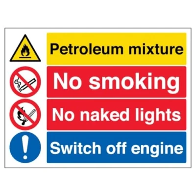 V Safety Petroleum/No Smoking/No Naked Lights/Switch Off 600 x 450 mm 3mm Aluminium Composite Sign