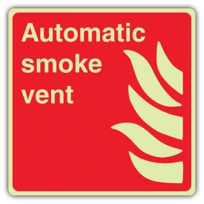 V Safety Photoluminescent Automatic Smoke Vent Square Sign 200 x mm Self Adhesive Vinyl Triple Glow