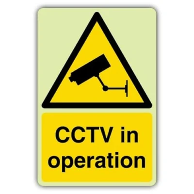 Wording & Purpose - Sign reads "CCTV In Operation"; designed to deter trespass and inform visitors of surveillance. Material & Build - durable self-adhesive vinyl for fast, drill-free installation and a secure bond on smooth, non-porous surfaces; photoluminescent surface that charges under ambient light and provides clear guidance during power loss. Visibility & Legibility – Photoluminescent surface charges under ambient light and glows in darkness or power loss to maintain guidance when lighting fails. Compliance by Design – Manufactured to follow UK/EU safety-sign rules, using the correct EN ISO 7010 pictograms, shapes and colour coding, with layouts aligned to HSE Safety Signs & Signals Regulations (1996) and BS 5499 legibility principles for clear, consistent communication. Made in Britain – Manufactured in Britain using premium materials for dependable quality, durable finishes and fast turnaround; engineered for high‑traffic commercial settings.