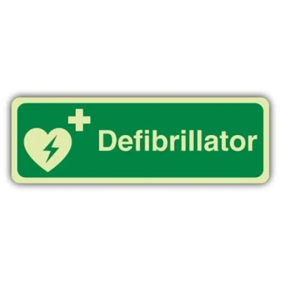 V Safety Photoluminescent Defibrillator Landscape Sign 450 x 150 mm Self Adhesive Vinyl Triple Glow