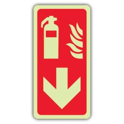 V Safety Photoluminescent Fire Extinguisher Symbol Arrow Down Sign 150 x 300 mm 1.2mm Rigid Plastic Triple Glow
