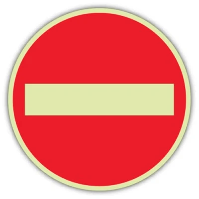 V Safety Photoluminescent No Entry Circle Sign 450 x mm 3mm Aluminium Composite GloReflect
