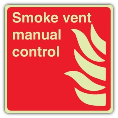 Wording & Purpose - Sign reads "Smoke Vent Manual Control - Square"; designed to clearly communicate essential site information. Material & Build - durable self-adhesive vinyl for fast, drill-free installation and a secure bond on smooth, non-porous surfaces; photoluminescent surface that charges under ambient light and provides clear guidance during power loss. Visibility & Legibility – High‑contrast colours and standard symbols maximise readability; lightweight build supports easy placement and a consistent professional look across your site. Compliance by Design – Manufactured to follow UK/EU safety-sign rules, using the correct EN ISO 7010 pictograms, shapes and colour coding, with layouts aligned to HSE Safety Signs & Signals Regulations (1996) and BS 5499 legibility principles for clear, consistent communication. Made in Britain – Manufactured in Britain using premium materials for dependable quality, durable finishes and fast turnaround; engineered for high‑traffic commercial settings.