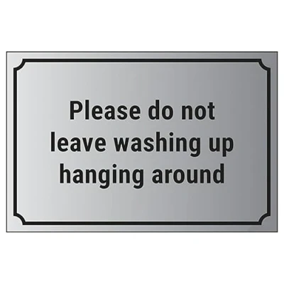 V Safety Please Do Not Leave Washing Up Hanging Around 200 x 150 mm Self Adhesive Vinyl Aluminium Effect Sign