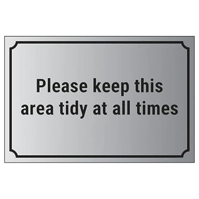 V Safety Please Keep This Area Tidy At All Times 200 x 150 mm 1.6mm Aluminium Effect Rigid Plastic Sign