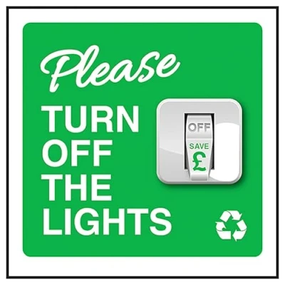 V Safety Please Turn Off The Light 100 x mm 3mm Aluminium Composite Sign