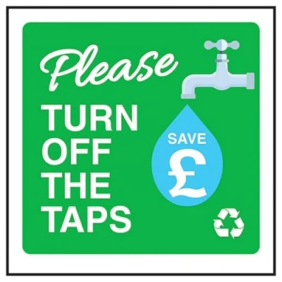 V Safety Please Turn Off The Taps Save £ 100 x mm 2mm Rigid Plastic Sign