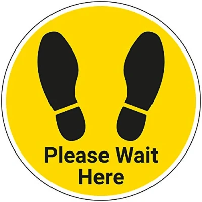 V Safety Please Wait Here With Footprint 300mm x Self Adhesive Floor Sticker