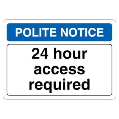 The Polite Notice 24 Hour Access Required sign requests that the area remains clear at all times, ensuring uninterrupted access when needed. Offers essential parking control guidance to customers, employees, and visitors, helping maintain orderly site operations. Compatible with the Signpost and Frame Kit, perfect for displaying temporary car park notices in locations without wall space. Bold, high-quality print with durable UV-stabilised inks ensures a clear, crisp message that withstands outdoor conditions. Meets Health and Safety at Work Act obligations by providing clear information to ensure the safety and wellbeing of all on-site.