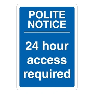V Safety Polite Notice 24 Hour Access Required Blue 210 x 297 mm (A4) Glow In The Dark Self Adhesive Vinyl Sign